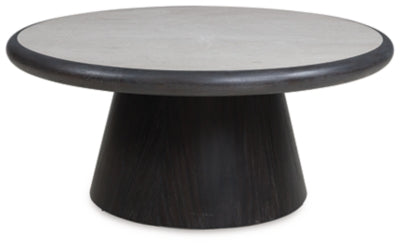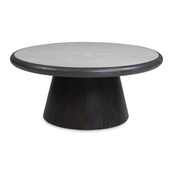 Rustic style. Refined design. This coffee table expertly marries a clean-lined silhouette with natural materials. Crafted with an elegant marble inlay top, it’s loaded with both homespun charm and contemporary flair. And with its versatile French black finish, this table effortlessly elevates casual aesthetics.